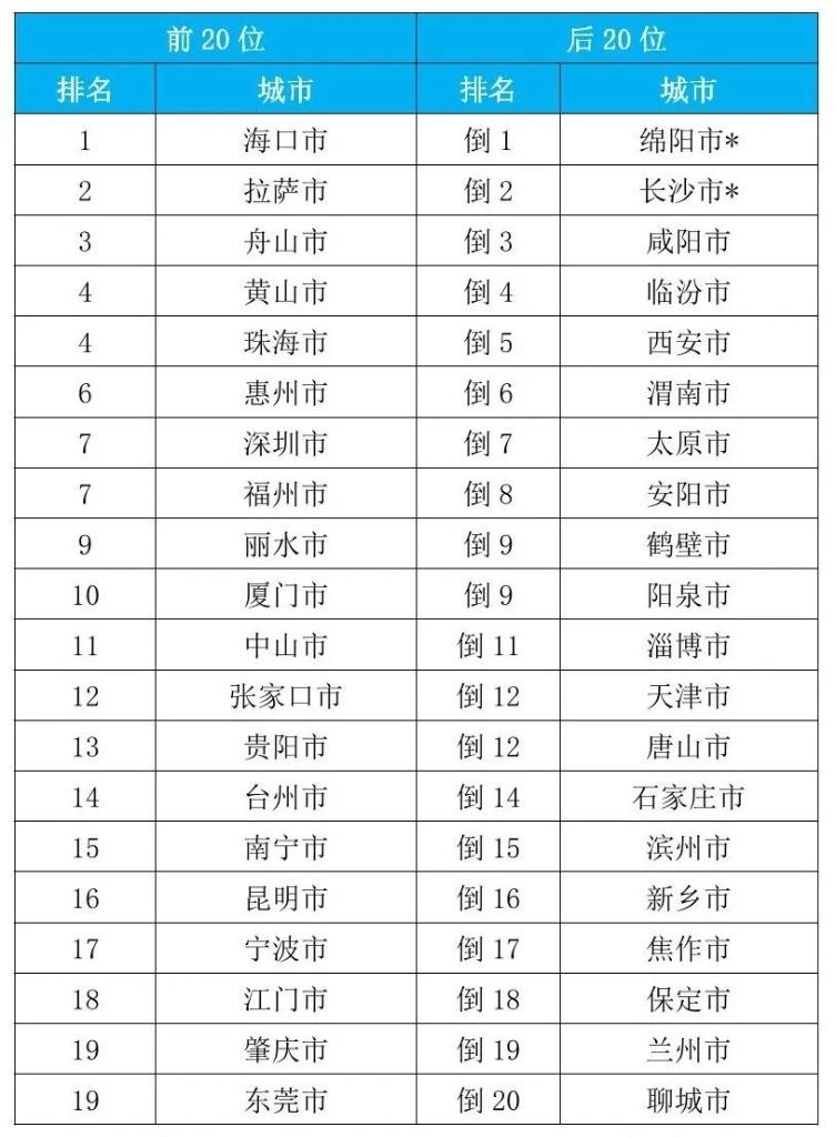 2023年1—9月168個(gè)重點(diǎn)城市空氣質(zhì)量排名前20位和后20位城市名單。(圖片來(lái)源:生態(tài)環(huán)境部)