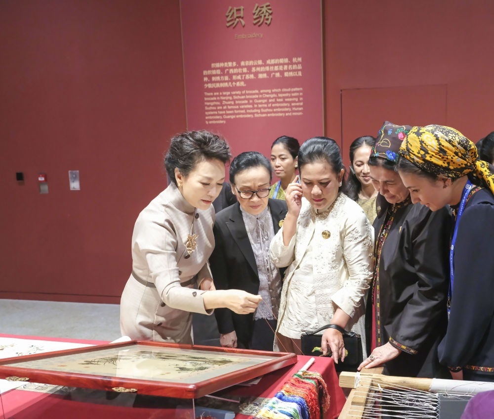 新華社北京10月18日電(記者溫馨)10月18日上午,國家主席習近平夫人彭麗媛邀請出席第三屆“一帶一路”國際合作高峰論壇的外方領(lǐng)導(dǎo)人夫人參觀中國工藝美術(shù)館(中國非物質(zhì)文化遺產(chǎn)館)。
