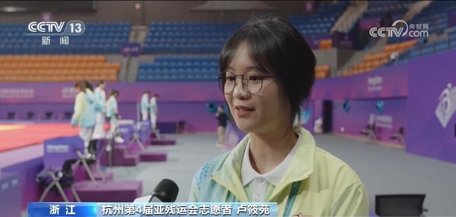 杭州第4屆亞殘運會志愿者 盧筱苑:經(jīng)過前期的線上培訓以及線下的實操訓練,我們已經(jīng)掌握了如何更好地服務殘障人士,我們需要更加熟悉場館的環(huán)境,為他們提供更加準確的指引,提供更加細微周到的服務。