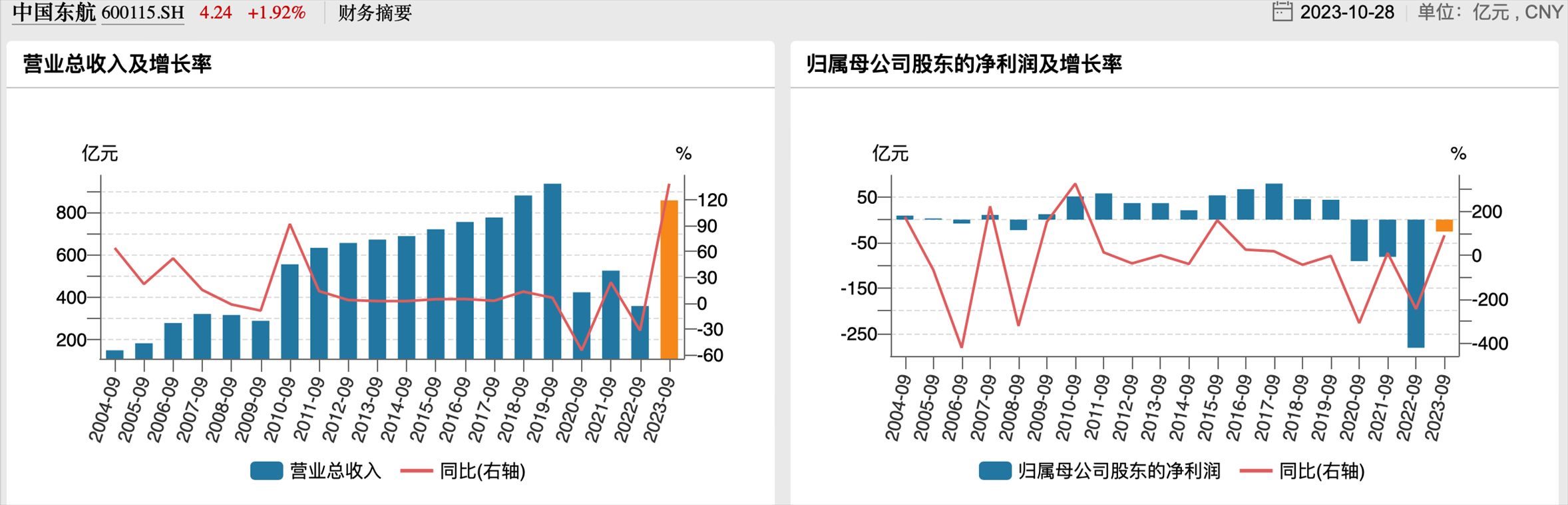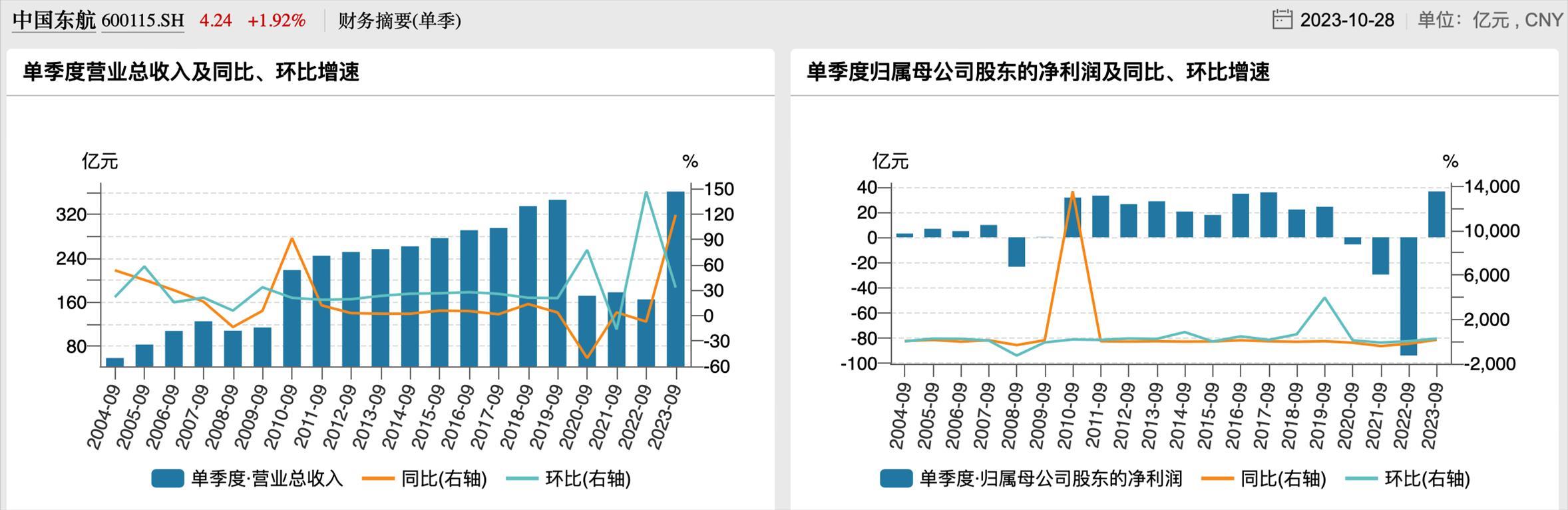 東航三季度營(yíng)收、凈利創(chuàng)歷史同期新高。前三季度營(yíng)收恢復(fù)至疫情前水平但仍低于2018、2019年,前三季度東航仍未扭虧,但同比已大幅減虧。