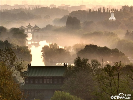 江蘇揚(yáng)州,瘦西湖風(fēng)景區(qū)云霧繚繞,如夢(mèng)似幻。