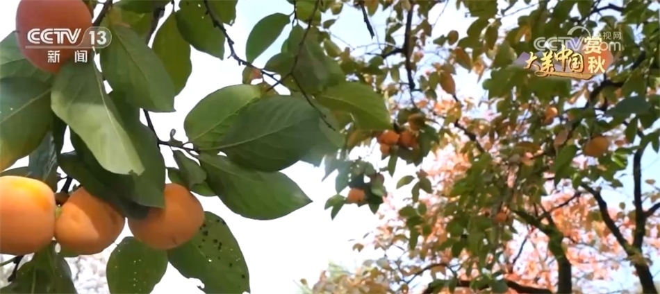您現(xiàn)在看到的是位于陜西驪山腳下的西安臨潼區(qū)。眼下,這里秋意漸濃,起伏的山巒間,樹樹皆染秋色,不僅染紅了楓葉,也染紅了柿子樹?;鸺t的柿子像一個個紅燈籠掛滿了枝頭,透著喜氣,這也是臨潼山間特有的秋韻。