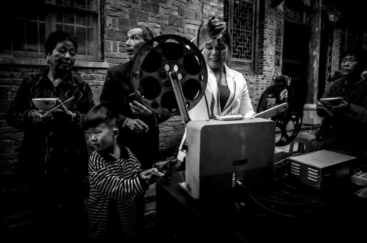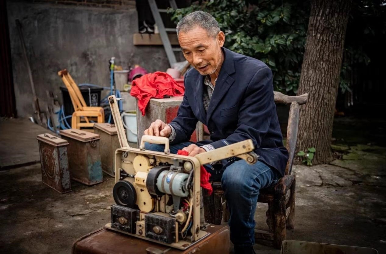 1983年,鄉(xiāng)里成立了電影放映隊,曹毅成了隊長,還參加了電影培訓班,扎扎實實地學了放映技術(shù)、電工等好多課程,成了專業(yè)的放映員。那時片源少,一張片子各個鄉(xiāng)排期輪流放映,讓曹毅最開心的事,就是坐上幾個小時的公交車去縣里拿膠片。有時揣著膠片回來的路上就忍不住想樂,哪回放新電影都像打仗一樣,人山人海,得防著別碰壞了放映機,還得留心會有哪個村連夜來搶放映機。“總有一萬人,銀幕前后都是人,背面都有人看。在稻田里面把那稻子割完了以后,電影就在稻場里面放,不然地方不夠大?!笨諝庵酗h著稻谷的香味,不少人會盤腿坐在地上,扎扎實實看完一部電影。