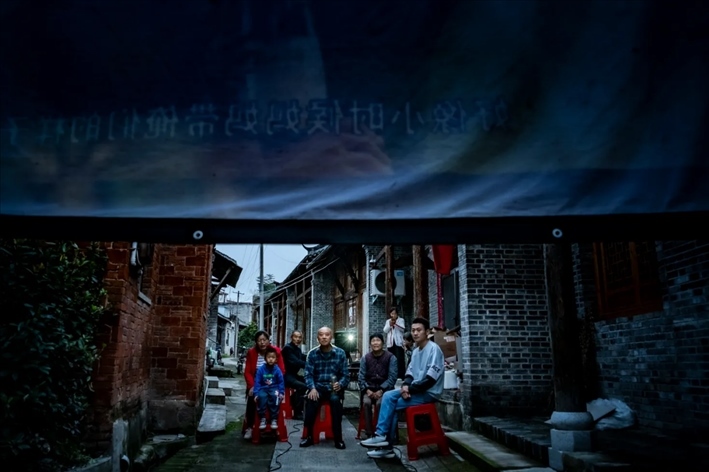 圍觀的人多了起來,曹毅妻子葉希榮看了一眼手機上的時間:六點半,數(shù)字電影放映機啟動,露天電影正式開始。放映機的箱子合上,就是電影放映員的專屬座位,曹毅挨著放映機坐定。“機器在這放著,人就不能離開機器”,這是師父教給曹毅的規(guī)矩,這一守,就是38年。