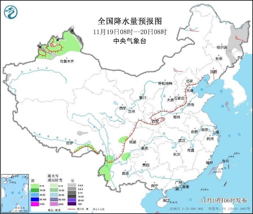 預(yù)計(jì),今明兩天,新疆北部等地雨雪天氣明顯。其中今天,新疆北部和伊犁河谷、黑龍江東部、吉林東部等地部分地區(qū)有小雪或雨夾雪,新疆北部部分地區(qū)有中到大雪,局地暴雪(10~12毫米)。明天,新疆沿天山地區(qū)和東部、甘肅西部、內(nèi)蒙古西北部、西藏東部、川西高原北部等地部分地區(qū)有小雪或雨夾雪,新疆伊犁河谷和東部、西藏東北部等地部分地區(qū)有中到大雪(5~8毫米)。