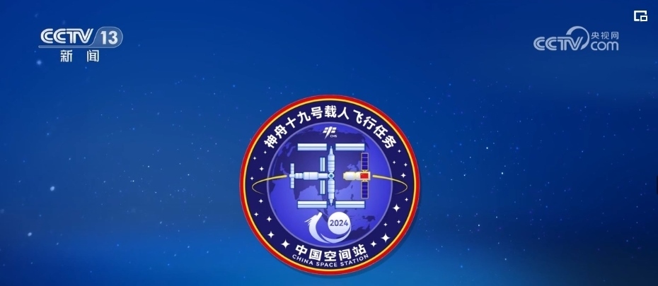 神舟十九號載人飛行任務標識是由中國空間站、神舟載人飛船、地球、星空等圖案構成的一個紅、黃、藍配色的圓形標識。數字“19”融入中國龍的元素,舞動上升。周圍的點點星辰共19顆,對應神舟十九號載人飛行任務,共同體現我國航天事業(yè)的繁榮昌盛。
