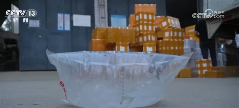 四個月后,向寨村破解了錦鯉“活體運輸”的瓶頸:把錦鯉裝進特殊材料制成的密封袋子內,充進氧氣后再進行熱合封口,新的包裝方式將破損率降低到百分之五以內,即便成年人站在上面,袋子也不會破損。