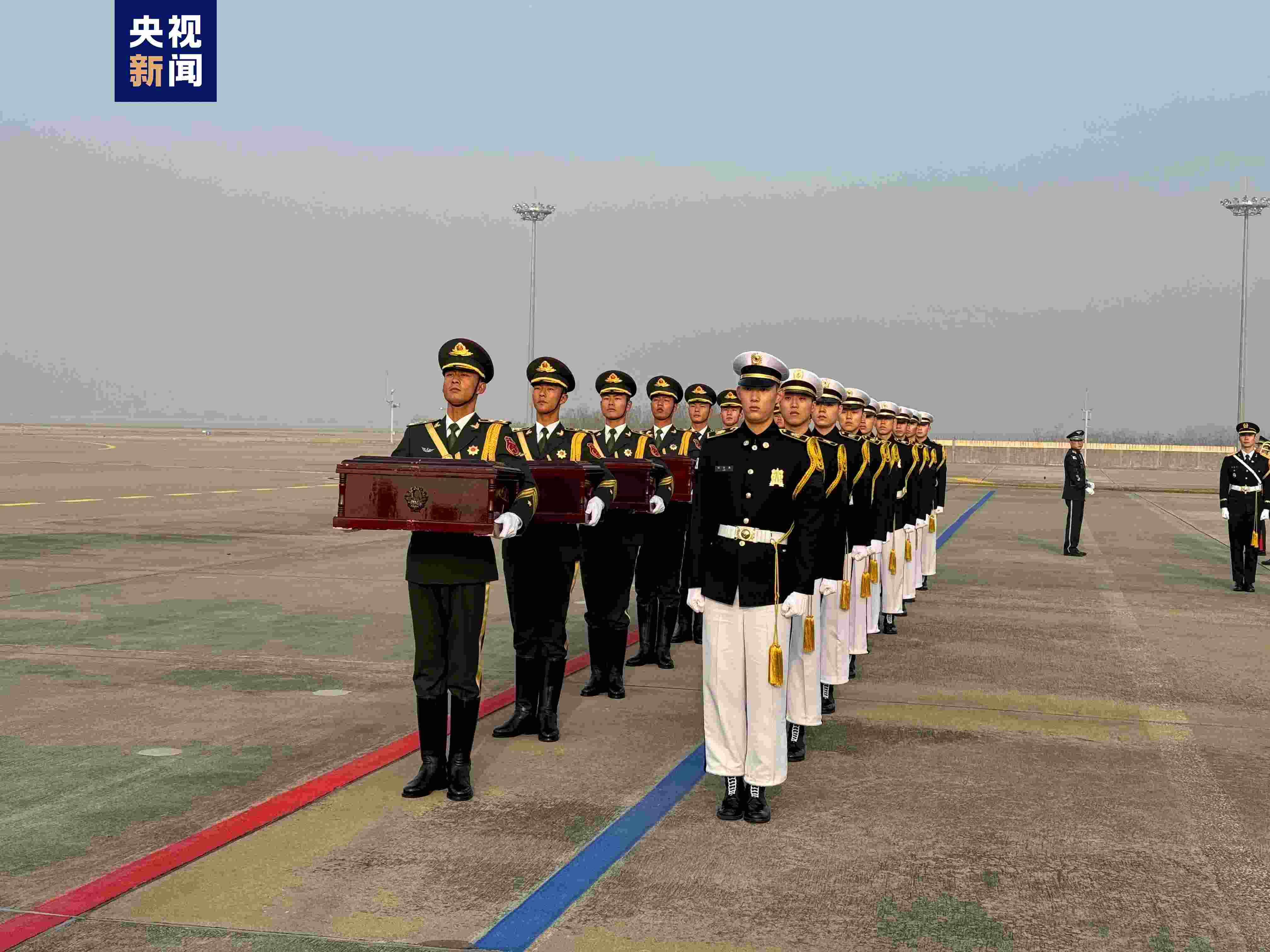 當(dāng)?shù)貢r(shí)間23日上午,中韓雙方在韓國仁川國際機(jī)場(chǎng)舉行第十批在韓中國人民志愿軍烈士遺骸及遺物交接儀式。此次韓方共向中方移交25名中國人民志愿軍烈士遺骸及335件遺物,交接儀式后烈士遺骸將搭乘中國空軍運(yùn)-20專機(jī)返回祖國。