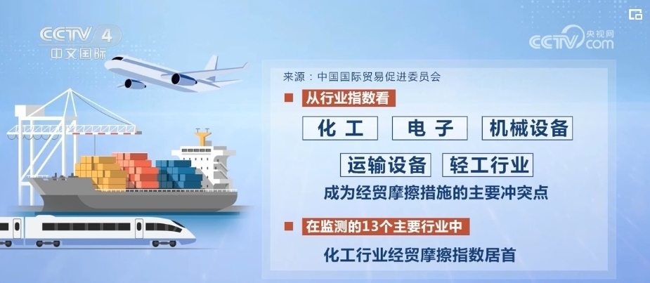 而從行業(yè)指數(shù)看,化工、電子、機械設(shè)備、運輸設(shè)備和輕工行業(yè)成為經(jīng)貿(mào)摩擦措施的主要沖突點。在監(jiān)測的13個主要行業(yè)中,化工行業(yè)經(jīng)貿(mào)摩擦指數(shù)居首。