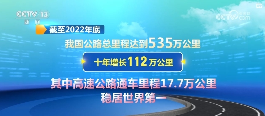 據介紹,截至2022年底,我國公路總里程達到535萬公里,十年增長112萬公里。其中,高速公路通車里程17.7萬公里,穩(wěn)居世界第一。國家高速公路六車道以上路段增加1.84萬公里。普通國道二級及以上占比、鋪裝路面占比分別達到80%和99%,較十年前分別提高約10%和13%,路網結構進一步優(yōu)化。