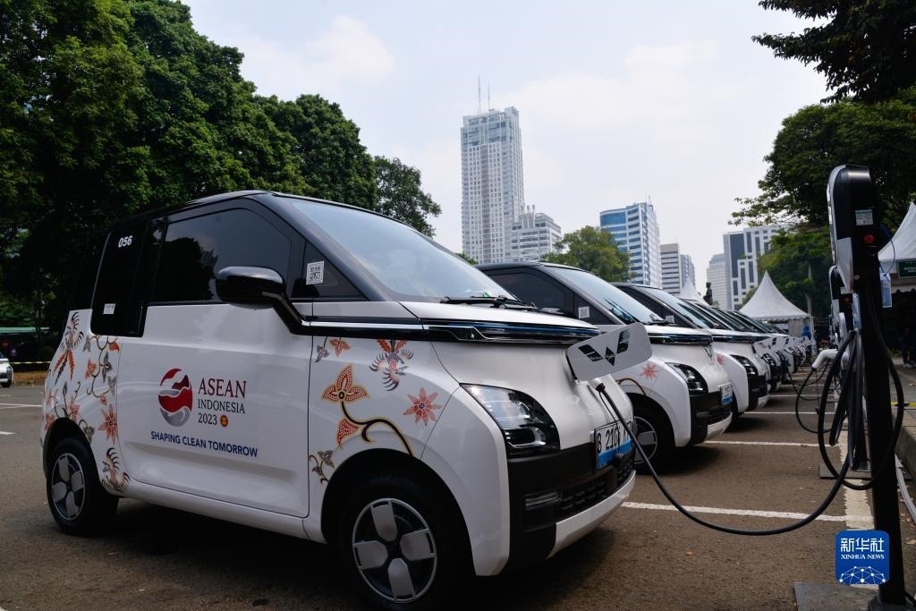 這是9月6日在印度尼西亞雅加達(dá)第43屆東盟峰會(huì)會(huì)場(chǎng)外拍攝的五菱新能源車Air ev。新華社記者 徐欽 攝
