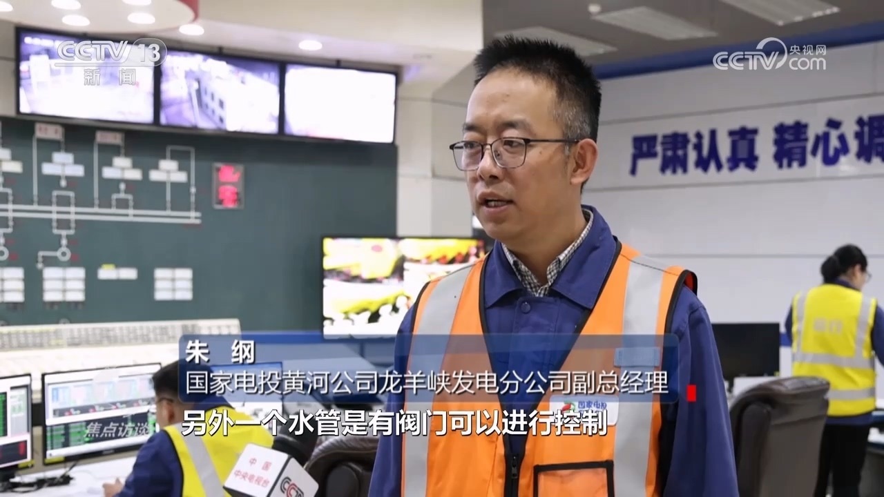 國家電投黃河公司龍羊峽發(fā)電分公司副總經(jīng)理朱綱:“一個水池有兩個進水管,一個水管沒有閥門不能控制,另外一個水管有閥門可以進行控制。這時候控制能調(diào)節(jié)、有閥門的水管來進行調(diào)節(jié),使得總入水池里的水始終是恒定的?!?/p>