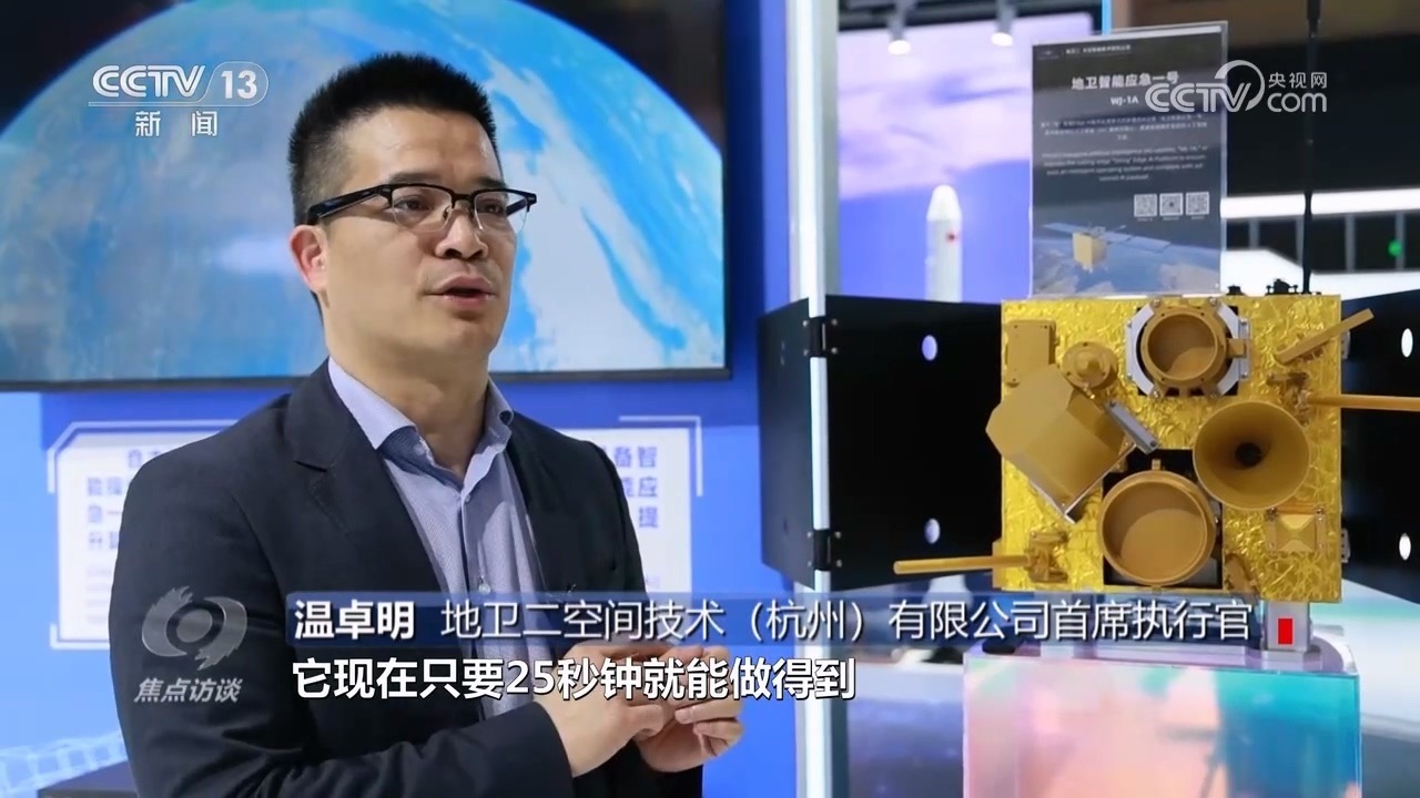 地衛(wèi)二空間技術(shù)(杭州)有限公司首席執(zhí)行官溫卓明:“這是一個聰明的衛(wèi)星,傳統(tǒng)的衛(wèi)星6個小時才能干完的事情,它只要25秒鐘就能做得到,而且原來可能要5000個工程師干的活,現(xiàn)在1個小時它就能做完。它是怎么能做到的?因為我們把人工智能放到了太空。”