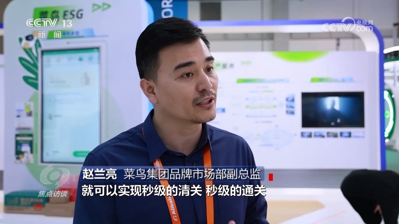 菜鳥集團品牌市場部副總監(jiān)趙蘭亮:“把商品的信息和海關(guān)報關(guān)的系統(tǒng)進行打通,就可以實現(xiàn)秒級的清關(guān)、秒級的通關(guān),這背后還有一個技術(shù),就是智能合單?!?/p>