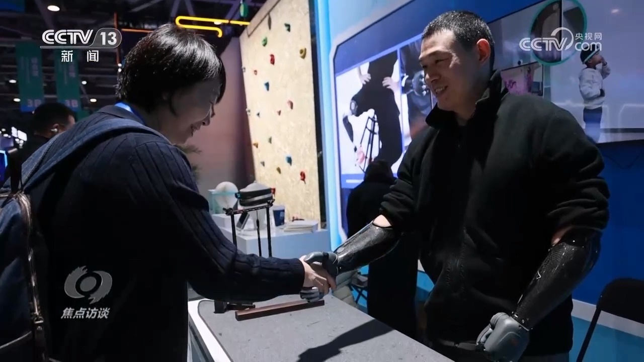 博覽會現(xiàn)場,一位坐在角落里的中年男子引起了我們的注意。他叫倪敏成,九歲時因為意外失去雙手,但讓他更感意外的是,30年后,腦機接口技術(shù)讓他重新?lián)碛辛艘浑p智能仿生手。