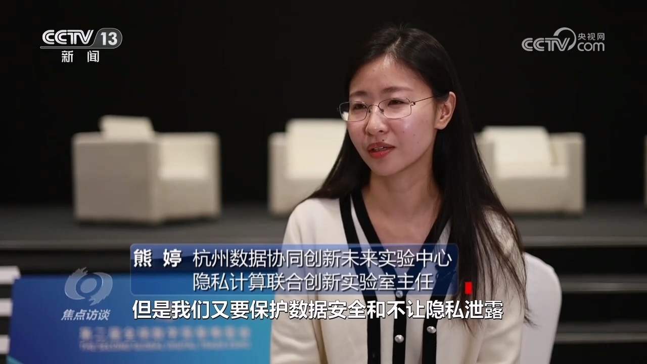 杭州數(shù)據(jù)協(xié)同創(chuàng)新未來實驗中心隱私計算聯(lián)合創(chuàng)新實驗室主任熊婷:“我們要加速數(shù)據(jù)要素快速的價值釋放,但是又要保護數(shù)據(jù)安全,不讓隱私泄露,現(xiàn)在天然就存在著一定的互相制約,我們怎么解決這個問題?隱私計算實際上是用密碼學(xué)、各種技術(shù)讓數(shù)據(jù)不拿出去,但是又能使用到數(shù)據(jù)的價值。要用各種技術(shù)手段、前沿技術(shù)保護自己的數(shù)據(jù),安全合規(guī)的使用數(shù)據(jù)?!?/p>