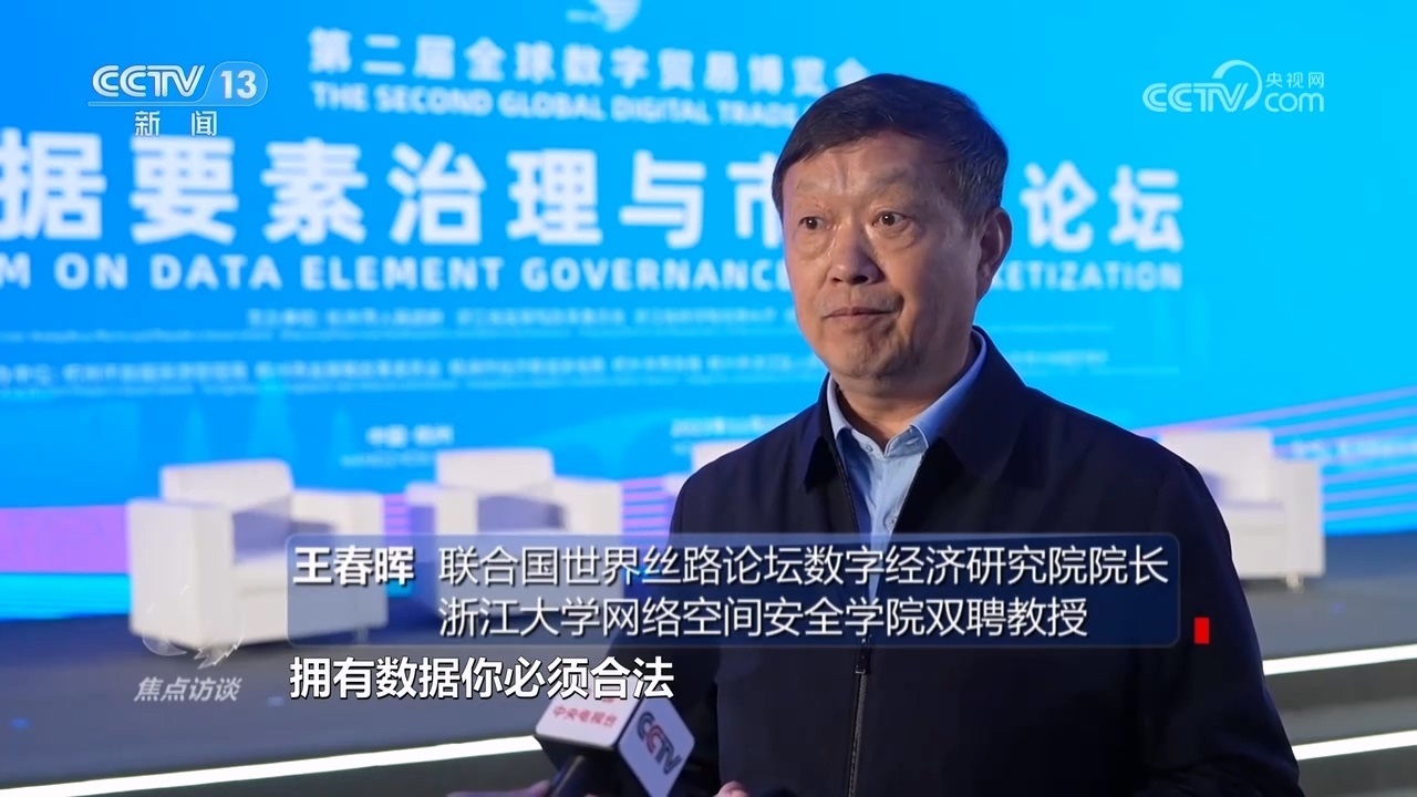 聯(lián)合國世界絲路論壇數(shù)字經(jīng)濟研究院院長、浙江大學(xué)網(wǎng)絡(luò)空間安全學(xué)院雙聘教授王春暉:“一個是法律層面的清晰,一個是經(jīng)濟方面的清晰,就是擁有數(shù)據(jù)必須合法,不能違法擁有數(shù)據(jù),擁有數(shù)據(jù)合法的情況下,可以加工利用,發(fā)揮對數(shù)據(jù)的整個價值的利用?!?/p>