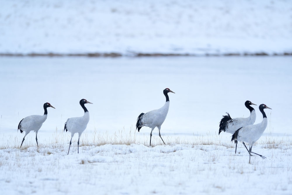 位于青海省的三江源國(guó)家公園黃河源園區(qū)內(nèi)的黑頸鶴(2021年10月21日攝)。