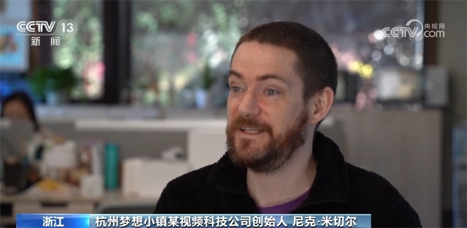 杭州夢想小鎮(zhèn)某視頻科技公司創(chuàng)始人 尼克·米切爾:在中國把那么有趣的文化通過VR拍出來,分享給全世界的人,然后將海外的(傳統(tǒng)文化)也分享給中國,同時我們在找一些新的機會,把這些人融合(交流)在一起。