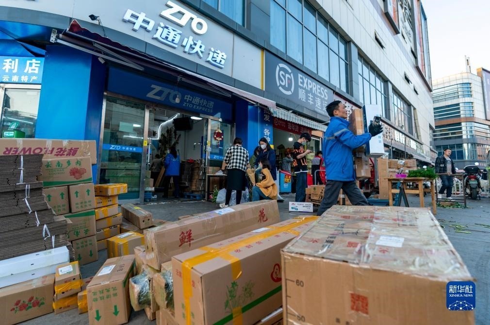 12月5日,張女士在四川成都收到了前一天訂購的鮮花。這束鮮花從云南昆明發(fā)出,由順豐速運承運,搭乘成昆高鐵快運專列飛馳而來,是2023年我國第1200億件快件。