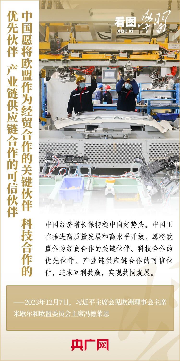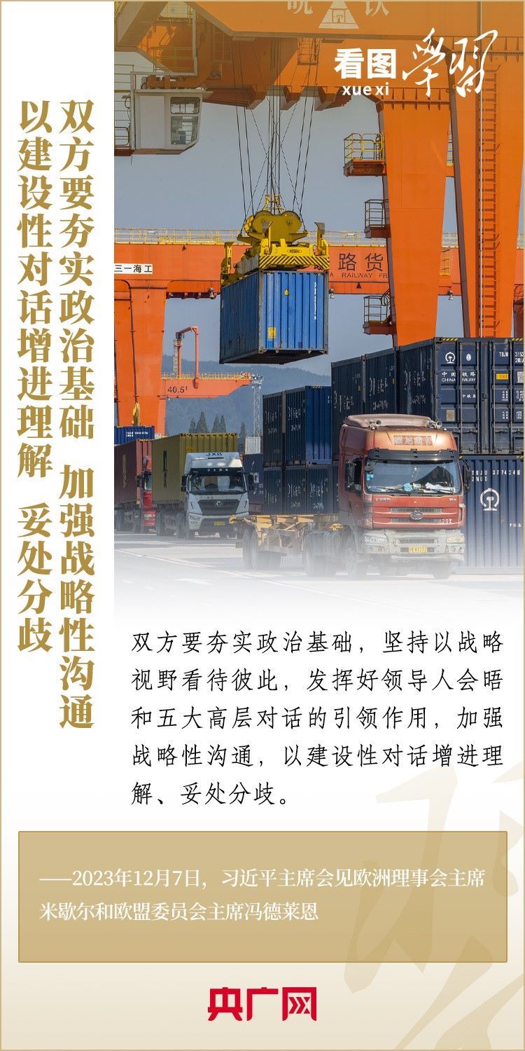 12月7日,國家主席習(xí)近平會見來華舉行第二十四次中國—?dú)W盟領(lǐng)導(dǎo)人會晤的歐洲理事會主席米歇爾和歐盟委員會主席馮德萊恩,雙方就事關(guān)中歐關(guān)系的戰(zhàn)略性問題,以及中歐各領(lǐng)域?qū)υ捄献鳌㈦p方重點(diǎn)關(guān)切、全球治理、國際和地區(qū)熱點(diǎn)問題等深入坦誠交換看法,并就一系列問題達(dá)成重要共識。今年是中歐建立全面戰(zhàn)略伙伴關(guān)系20周年,習(xí)主席強(qiáng)調(diào),中歐關(guān)系具有戰(zhàn)略意義和世界影響,關(guān)乎世界和平、穩(wěn)定、繁榮。一起來學(xué)習(xí)!