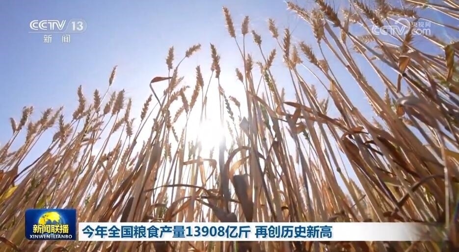 央視網(wǎng)消息(新聞聯(lián)播):國家統(tǒng)計局今天(12月11日)發(fā)布全年糧食產(chǎn)量數(shù)據(jù),2023年全國糧食總產(chǎn)量達(dá)13908.2億斤,再創(chuàng)歷史新高,連續(xù)9年穩(wěn)定在1.3萬億斤以上。