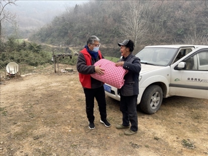 荊門市沙洋縣濱江新區(qū)百秀坡社區(qū)黨員志愿者為行動不便黨員送學上門