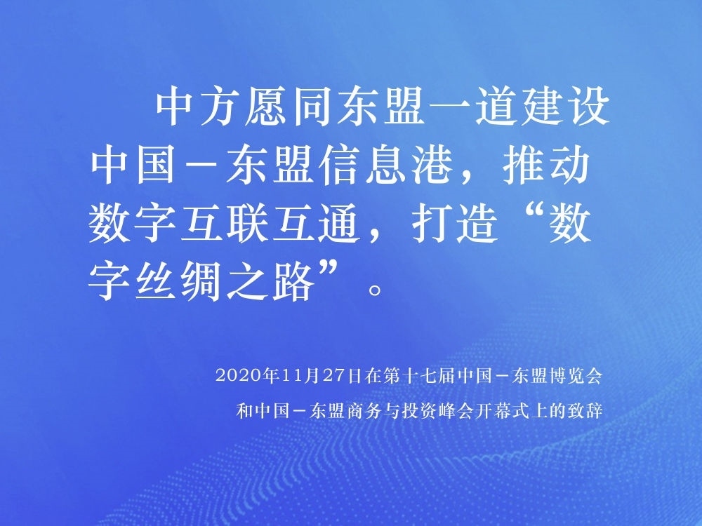 2014年,中國(guó)提出與東盟十國(guó)共建“中國(guó)-東盟信息港”倡議,得到了東盟各國(guó)的積極響應(yīng)。在第十七屆中國(guó)-東盟博覽會(huì)和中國(guó)-東盟商務(wù)與投資峰會(huì)開(kāi)幕式上,習(xí)近平總書(shū)記提出“提升科技創(chuàng)新,深化數(shù)字經(jīng)濟(jì)合作”的重要倡議,表示中方愿同東盟各國(guó)攜手合作,抓住新一輪科技革命和產(chǎn)業(yè)變革機(jī)遇,發(fā)揮互補(bǔ)優(yōu)勢(shì),聚焦合作共贏。