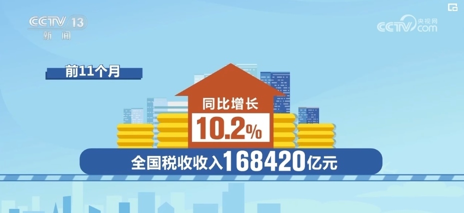 總體來看,11月當(dāng)月,全國稅收收入10579億元,同比增長3.2%。前11個月,全國稅收收入168420億元,同比增長10.2%。