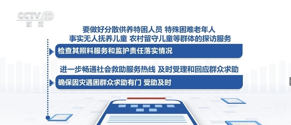 要做好分散供養(yǎng)特困人員、特殊困難老年人、事實(shí)無人撫養(yǎng)兒童、農(nóng)村留守兒童等群體的探訪服務(wù),檢查其照料服務(wù)和監(jiān)護(hù)責(zé)任落實(shí)情況。進(jìn)一步暢通社會(huì)救助服務(wù)熱線,及時(shí)受理和回應(yīng)群眾求助,確保因?yàn)?zāi)遇困群眾求助有門、受助及時(shí)。