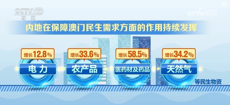 內(nèi)地對(duì)澳門出口商品結(jié)構(gòu)更加多元。2023年以來,內(nèi)地經(jīng)拱北海關(guān)對(duì)澳門地區(qū)出口機(jī)電產(chǎn)品74億元,占同期總值的37.4%,而1999年的比重不足10%。此外,電力、農(nóng)產(chǎn)品、醫(yī)藥材及藥品、天然氣等民生物資分別增長(zhǎng)12.8%、33.6%、58.5%、34.2%,內(nèi)地在保障澳門民生需求方面的作用持續(xù)發(fā)揮。