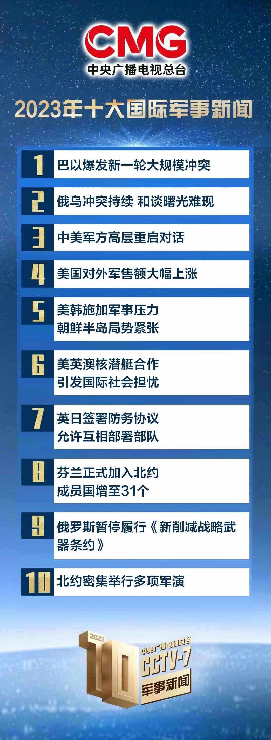 中央廣播電視總臺發(fā)布2023年十大國內(nèi)、十大國際軍事新聞