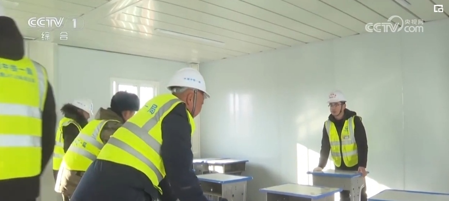 在青海民和縣,受災學校的裝配式板房加緊建設(shè),官亭鎮(zhèn)中心學校的84間臨時教室和生活用房基本搭建完成,教室課桌椅配備到位,教室里也通了電和網(wǎng)絡(luò)。12月28日,學生們就能搬進板房里上課了。