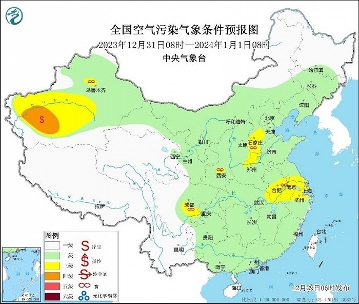 央視網(wǎng)消息:據(jù)中央氣象臺網(wǎng)站消息,12月29日早晨,中央氣象臺將大霧預警升級為最高等級的紅色,這也是今年首次發(fā)布大霧紅色預警。氣象監(jiān)測顯示,今晨,內(nèi)蒙古中部、寧夏北部、陜西、山西、河北中南部、天津、山東、河南、蘇皖中南部、浙江北部和西部、江西北部、湖北、湖南及四川盆地等地出現(xiàn)輕度到中度污染,部分地區(qū)重度污染;上述部分地區(qū)出現(xiàn)能見度不足1千米的大霧,其中河北、山東、安徽、江蘇、浙江及上海等局地能見度不足200米。今天早晨至上午時段,四川盆地至黃淮、江淮一帶的大霧天氣仍會持續(xù)。
