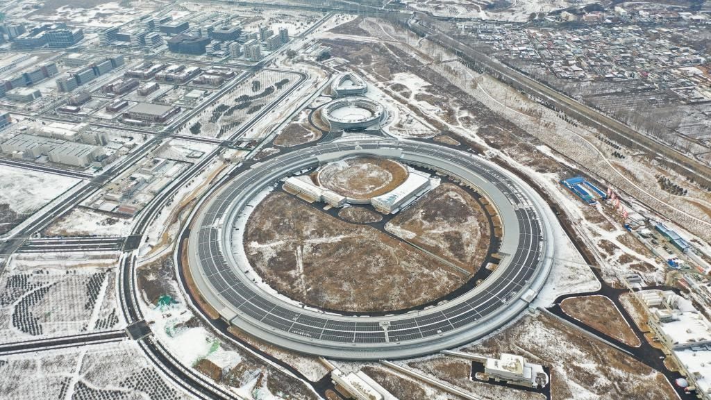 12月11日拍攝的高能同步輻射光源(HEPS)全景(無(wú)人機(jī)照片)。新華社記者 金立旺 攝