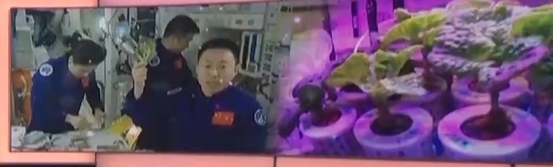 除了航天醫(yī)學(xué)實(shí)驗(yàn),空間植物栽培實(shí)驗(yàn)也伴隨了航天員的空間站生活,神十七航天員目前在太空種植蔬果所使用的“太空菜園”裝置,是由中國(guó)航天員科研訓(xùn)練中心新設(shè)計(jì)的第二代空間植物栽培裝置。2022年,神十四航天員蔡旭哲第一次在中國(guó)空間站培植出了生菜,并與隊(duì)友們分享了勞動(dòng)成果。