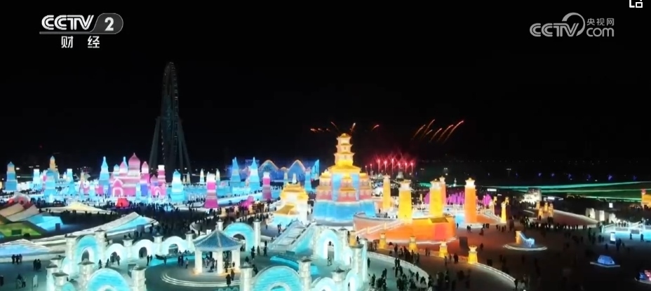 總臺央視記者 郭晉華:在這個(gè)冰雕玉砌的世界,一簇簇焰火映襯著流光溢彩的冰雕建筑群,帶著人們對新年的祈盼噴薄而出。哈爾濱冰雪大世界,雖然現(xiàn)在室外氣溫達(dá)到了零下20多度,但是大家冰雪跨年的熱情卻是點(diǎn)燃了全場,來自全國各地的游客在這場狂歡中一起迎接新年的到來。