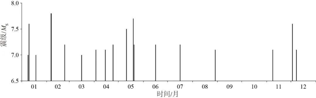 2023年全球7級以上地震震級時(shí)序圖