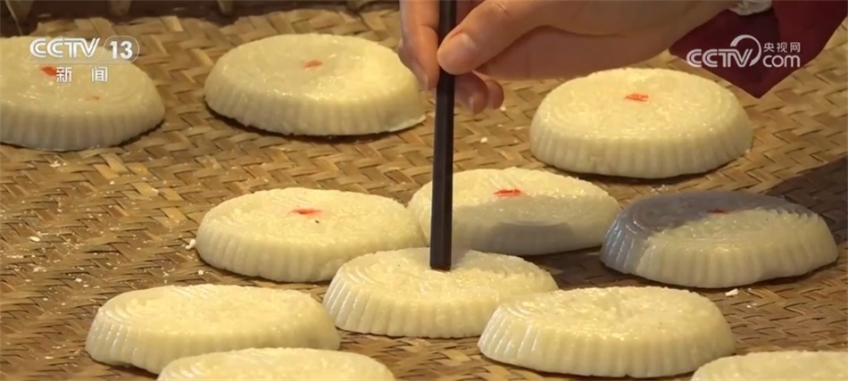 這幾天,黃山市黃山區(qū)湯口鎮(zhèn)的村民們正忙著打“食桃”。村民們將糯米和秈米碾成米粉,按比例加熱水?dāng)嚢?,再將一塊一塊球狀的米粉團(tuán)摁進(jìn)模子里敲打出來(lái),打好的食桃放入蒸箱中,蒸二十分鐘即可出鍋。蒸熟的食桃口感綿糯,刻著各種吉祥圖案,寓意著人們對(duì)新一年的祝福和期盼。