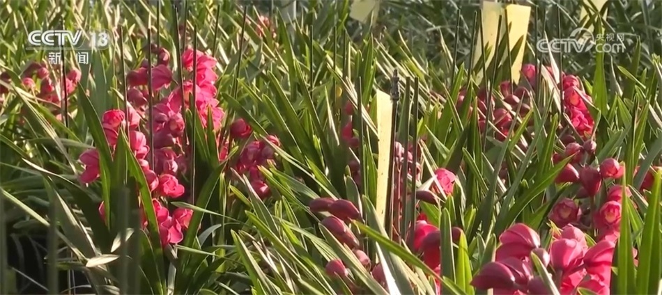 在云南,不同類型的年宵花也開(kāi)始大量上市。在玉溪江川區(qū)九溪鎮(zhèn)的花卉大棚里,整齊擺放的大花蕙蘭競(jìng)相開(kāi)放。大花蕙蘭可單獨(dú)擺放,也可制作成胸花等小型花藝,特別是瓶插期長(zhǎng)達(dá)45天,成為這段時(shí)間的暢銷(xiāo)花。