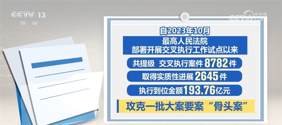 最高人民法院介紹,執(zhí)行難中常見被執(zhí)行人是當?shù)刂匾髽I(yè)、納稅大戶,甚至是重點國企或行政部門等情況。交叉執(zhí)行就是要讓接受指定的法院在不受牽絆、沒有包袱、完全依法自主的條件下力推案件執(zhí)行。據(jù)統(tǒng)計,開展交叉執(zhí)行工作試點以來,共提級、交叉執(zhí)行案件8782件,取得實質(zhì)性進展2645件,執(zhí)行到位金額193.76億元,攻克了一批大案要案“骨頭案”。最高人民法院要求,上級法院發(fā)現(xiàn)原執(zhí)行法院存在消極執(zhí)行、拖延執(zhí)行等執(zhí)行不力情形,發(fā)現(xiàn)違紀違法問題線索的,應當嚴肅依紀依法查處、追究責任。