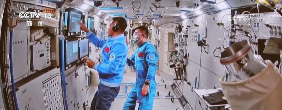 上午9時(shí)許,神十七航天員打開(kāi)空間站核心艙后向艙門(mén),根據(jù)地面技術(shù)人員指引,完成艙門(mén)氣密性檢查、環(huán)境檢查等開(kāi)艙前準(zhǔn)備工作。