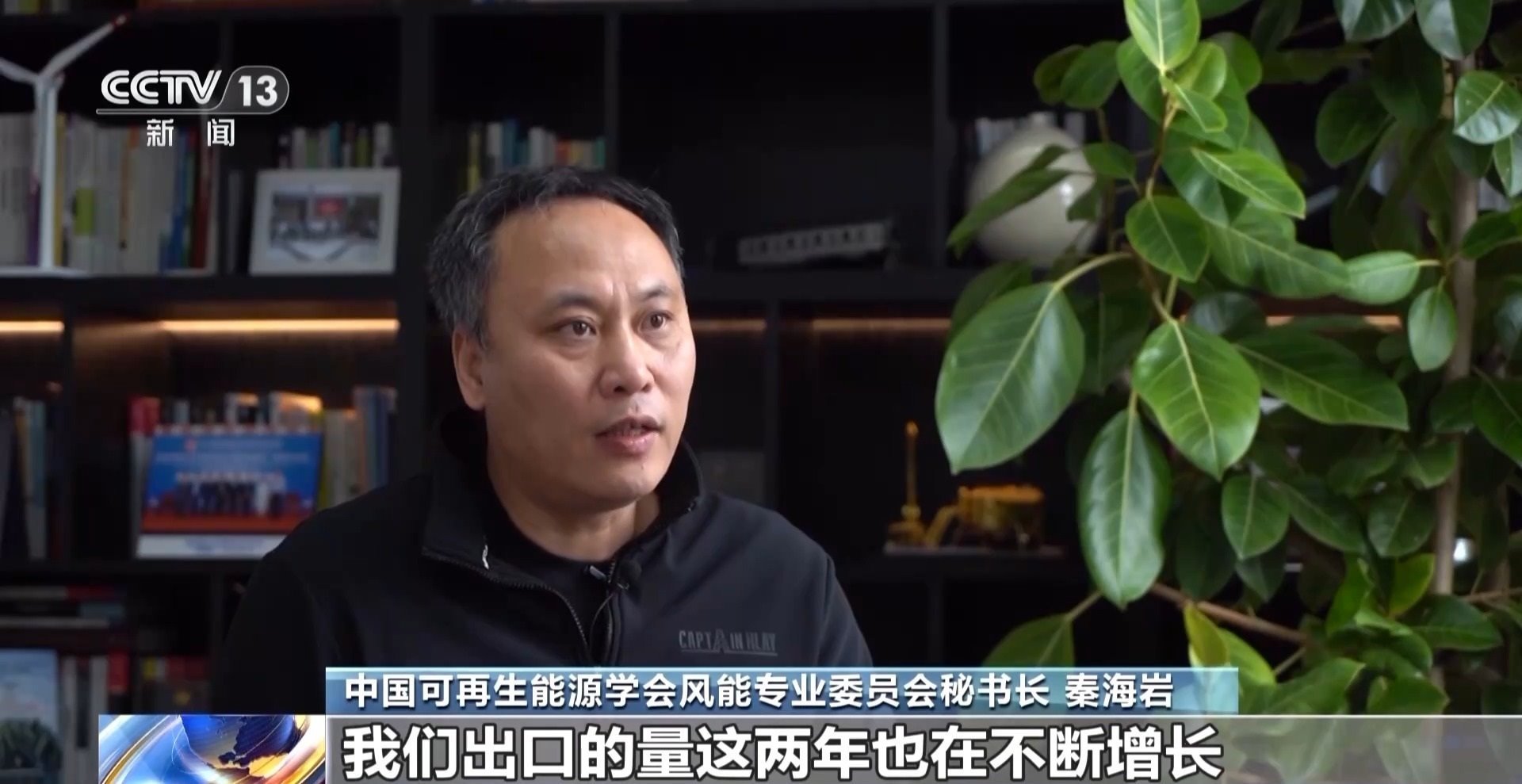 中國可再生能源學(xué)會風(fēng)能專業(yè)委員會秘書長 秦海巖:我們出口的量這兩年也在不斷增長,去年基本上超過了500萬千瓦,累計(jì)已經(jīng)超過了1700萬千瓦。
