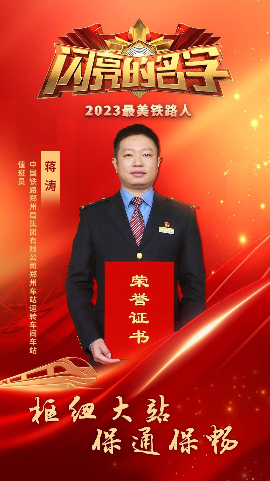 獲得2023年“最美鐵路人”稱號(hào)的10名個(gè)人和1個(gè)集體分別是蔣濤、王庭虎、張華、李軍、王笑冰、米爾班?艾依提、斯朗旺扎、馬小利、陳燕平、朱少銘,以及通化橋隧第一維修小組。