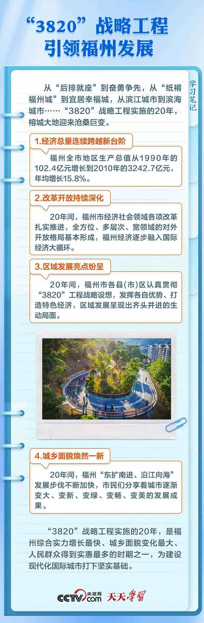三十多年來(lái),福州堅(jiān)持“3820”戰(zhàn)略工程思想精髓不動(dòng)搖,一張藍(lán)圖繪到底,不斷開(kāi)創(chuàng)現(xiàn)代化國(guó)際城市建設(shè)的嶄新局面?!?820”戰(zhàn)略是如何制定的?其思想精髓和時(shí)代價(jià)值有哪些?央視網(wǎng)《天天學(xué)習(xí)》欄目與您一起學(xué)習(xí)領(lǐng)悟。