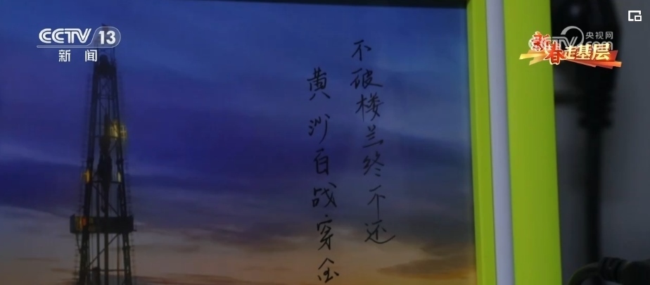 中國石油青海油田柴平12井鉆井隊長 李偉:(當時)看周邊的環(huán)境比較荒涼,有感而發(fā)寫了一句“黃沙百戰(zhàn)穿金甲,不破樓蘭終不還”,也算給自己設(shè)立一個目標,什么時候完鉆,什么時候回家。