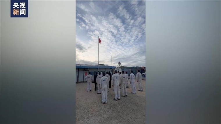 ·中國駐瑙魯使館復館小組29日舉行升國旗儀式。時隔近19年,五星紅旗再次在瑙魯升起。