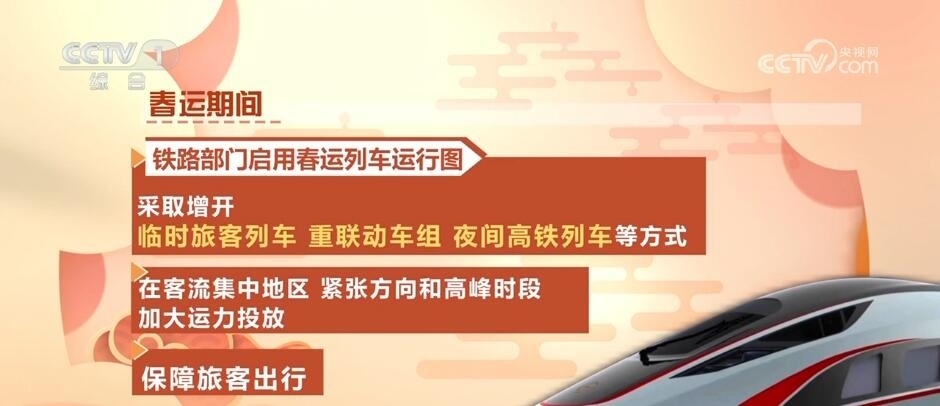 春運(yùn)期間,鐵路部門啟用春運(yùn)列車運(yùn)行圖,采取增開臨時(shí)旅客列車、重聯(lián)動(dòng)車組、夜間高鐵列車等方式,在客流集中地區(qū)、緊張方向和高峰時(shí)段加大運(yùn)力投放,保障旅客出行。國(guó)鐵濟(jì)南局春運(yùn)期間安排臨客超90對(duì),其中開行去往北京、上海、石家莊、哈爾濱、福州等方向跨省臨客47對(duì)。國(guó)鐵武漢局春運(yùn)首日加開臨客49對(duì),哈爾濱鐵路部門安排開行臨客列車74對(duì),太原鐵路部門安排開行臨客列車64對(duì)。