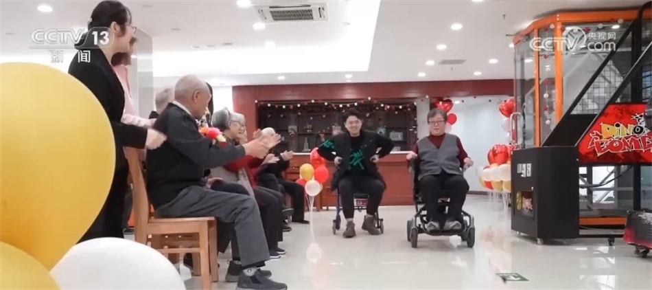 一走進(jìn)山東青島的這家養(yǎng)老院,記者就碰上了一場特殊的“輪椅”競速賽?!?5后”男孩劉云峰正模擬老年人推著助力車前進(jìn),而他的競爭對手張奶奶用單手操作電動輪椅就輕松沖過了終點。