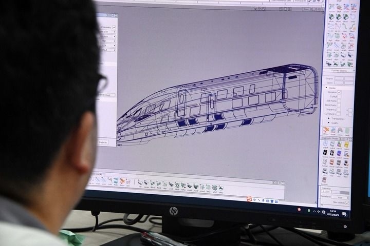 2023年8月29日,中車(chē)青島四方設(shè)計(jì)部門(mén)工作人員在進(jìn)行車(chē)輛框架設(shè)計(jì)。新華社記者 李紫恒攝